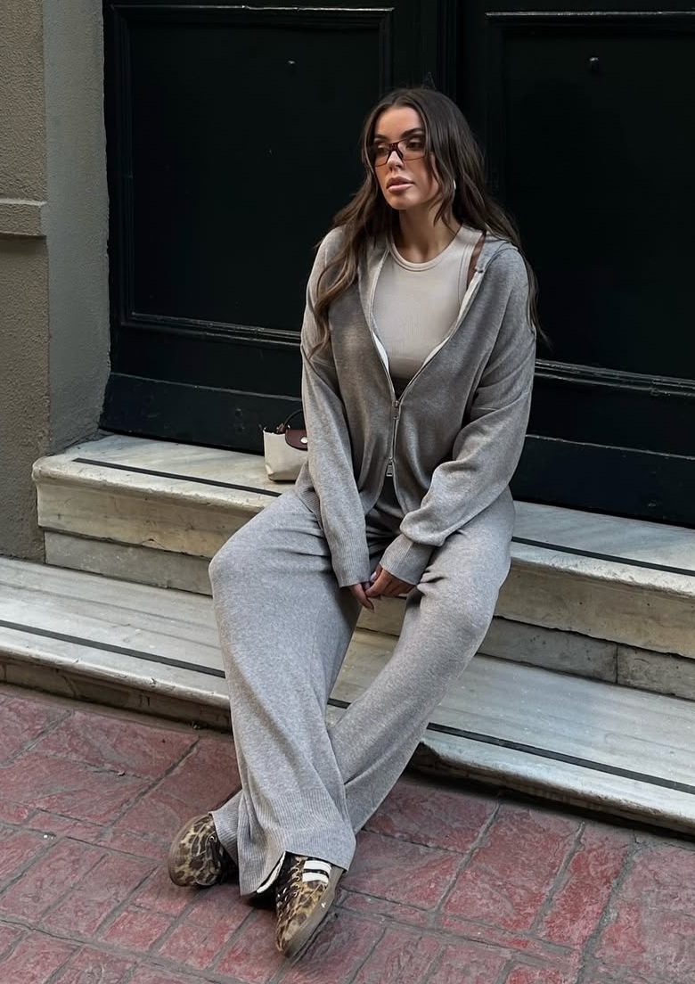 Doppel-Zip Zweiteiler grau
