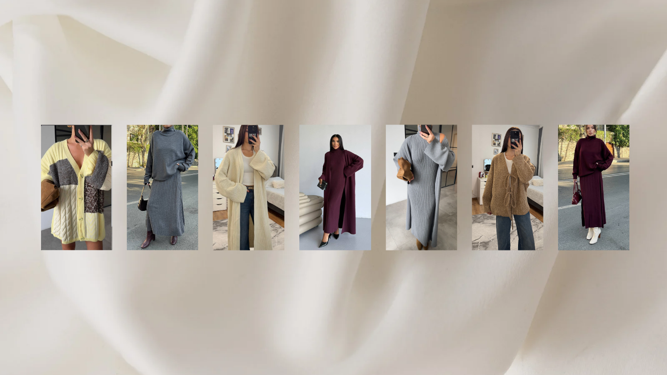 Das Elegante Gerippte Strick-Set Mokka-braun